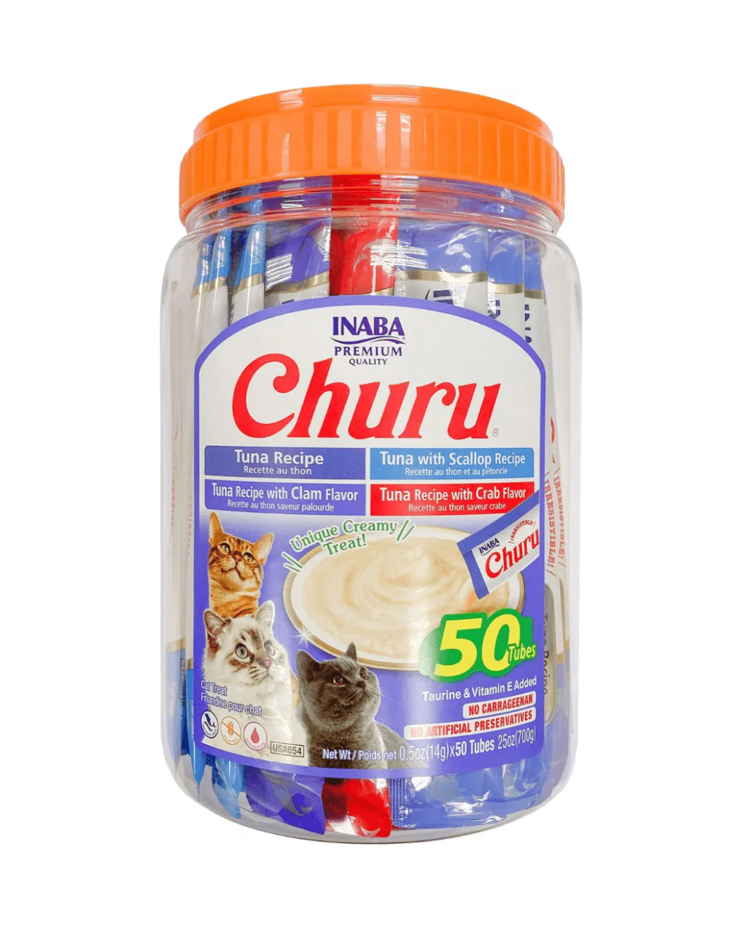 Inaba Churu Premios Variedad de Mariscos Bote de 50 Tubos 14gr